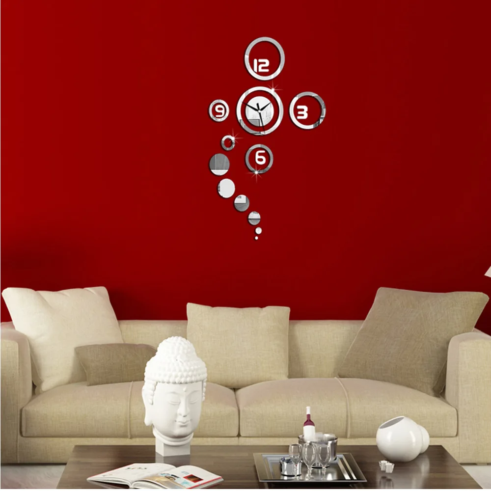 Diy Round Mirror Glass Wall Clock Set Modern Circle Design Mirror