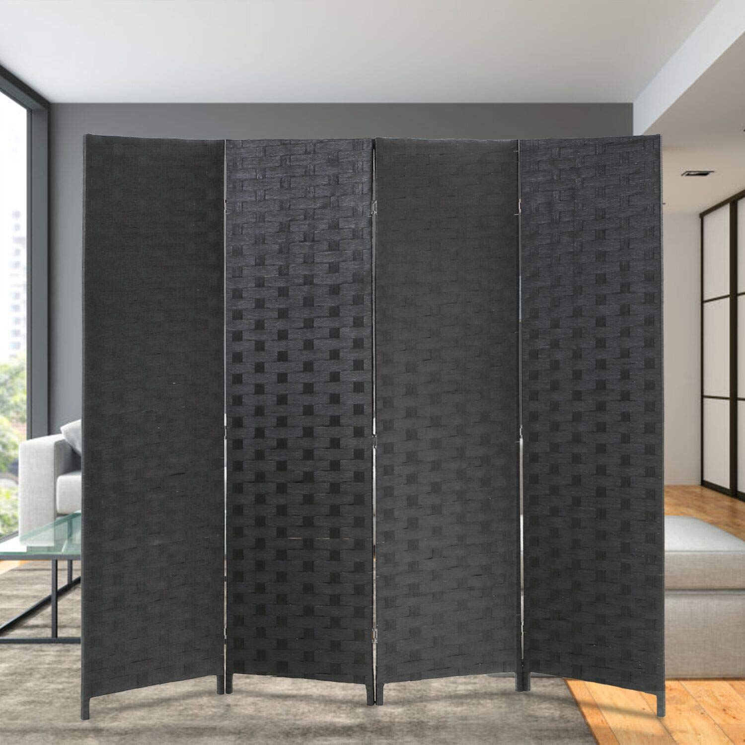 Room Divider 6 Foot Wall Divider Wood Screen 4 Panels Wood Mesh