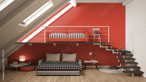 Loft Mezzanine One Room Minimalist Living And Bedroom White And