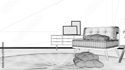 Blueprint Project Draft Minimalist Living Room With Big Round