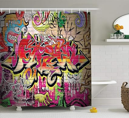 Rustic Home Decor Shower Curtain By Ambesonne Graffiti On Wall